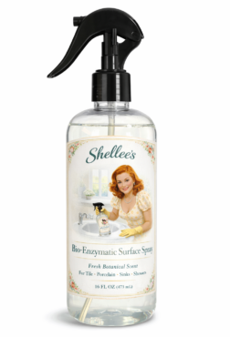 Shellee’s Bio-Enzymatic Surface Spray is a safe, effective, environmentally-friendly general purpose cleaner + degreaser designed for real life: sticky fingerprints, bathroom buildup, kitchen splatters, and those “how did that even happen?” messes.