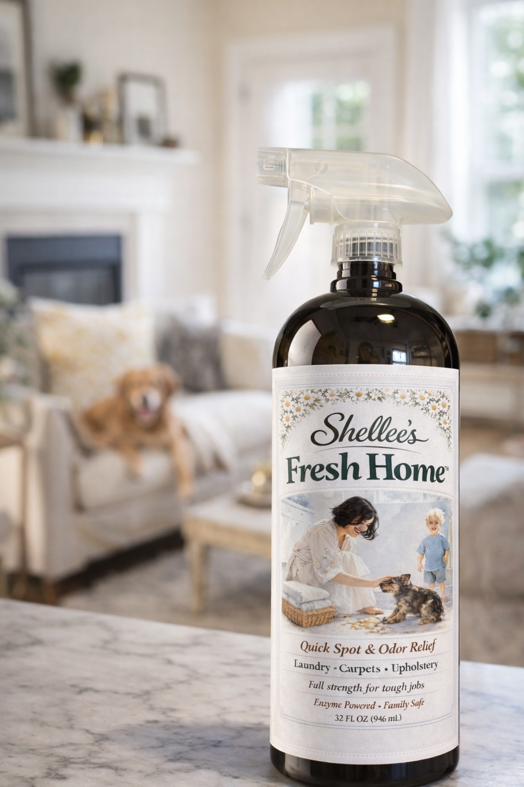Shellee’s Fresh Home is a full-strength, enzyme-powered stain and odor remover designed for laundry, carpets, upholstery, and all those “oops” moments life throws your way. From pet accidents to kids’ spills, it works at the molecular level—breaking down organic messes so they’re gone for good. 🧬💪